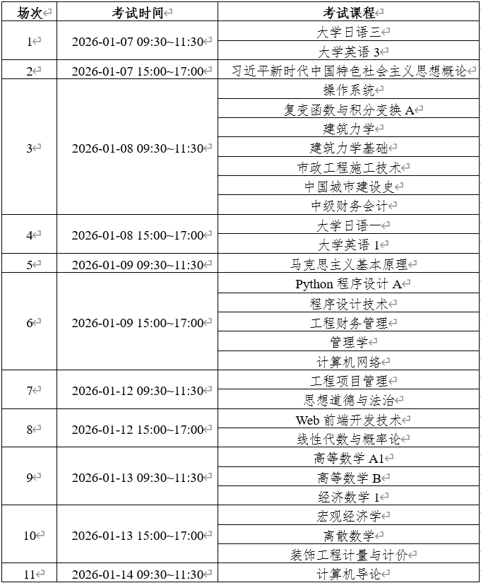 2025-2026学年第一学期期末集中周考试时间、考试课程安排见附件,具体考试安排表另行公布。请各二级单位做好考试的一切准备。