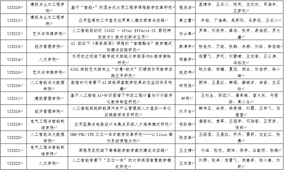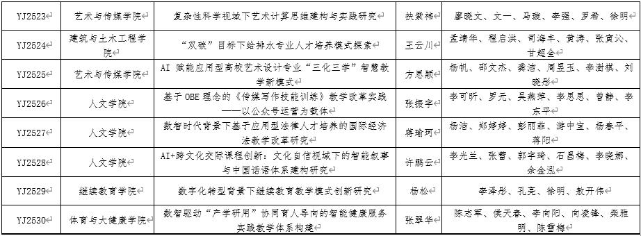 为推进我校高等教育教学改革,提高我校教学水平,提升教师教学能力,培育高等教育优秀教学成果,学校组织了2025年高等教育教学改革研究项目(以下简称“教改项目”)申报评审工作。经各二级单位推荐,学校专家评审,最终确定了30个项目为2025年校级教改项目。现对立项名单予以公示(见附件),公示时间为2025年9月23日-2025年9月26日。