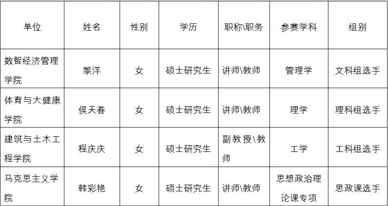 重庆市第八届青年教师教学竞赛参赛教师名单