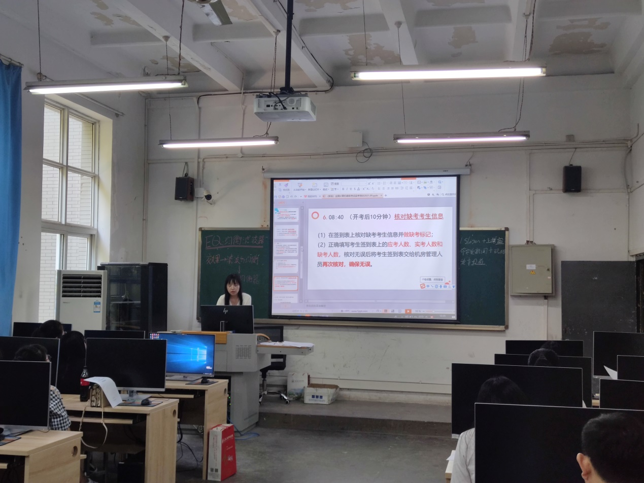 NCRE采用计算机化考试形式,对服务器、网络、计算机等设备等要求较高。为确保考试顺利实施,教务处会同现代教育技术中心于考前进行了系统安装(考试系统和人脸身份识别系统)、考场环境(包括服务器、网络、考试机的检测)、模拟测试及机房管理员、考务工作人员培训等工作。